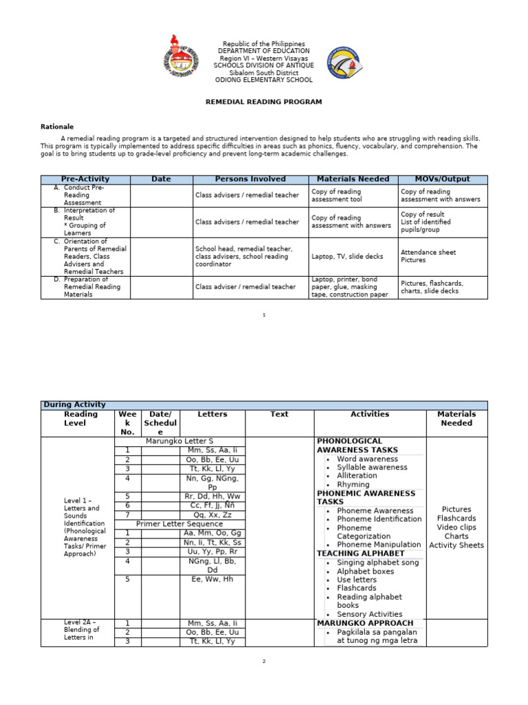 Remedial Reading Program WAP - Republic of the Philippines Department ...