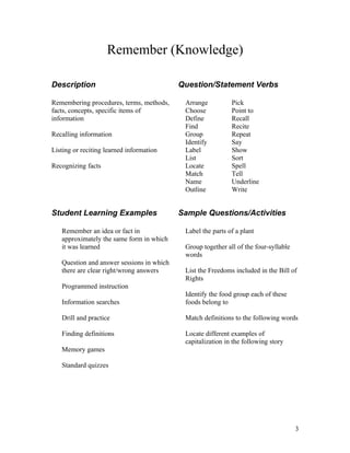 Sample questions stems based in revised Bloom's taxonomy | PDF ...