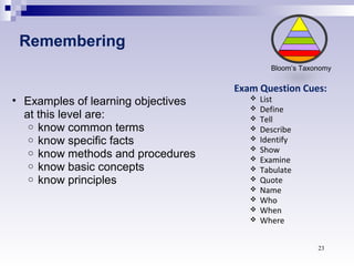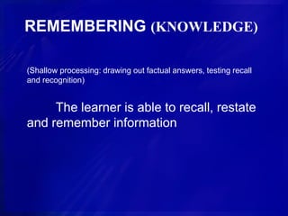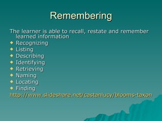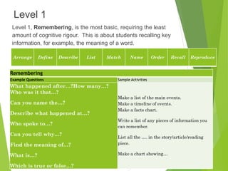 Blooms Taxonomy Sample Questions - REMEMBERING The remembering level ...