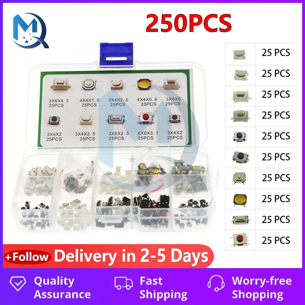 250pcs Push Button Switch Kit Remote Control SMD Tactile Push Button ...
