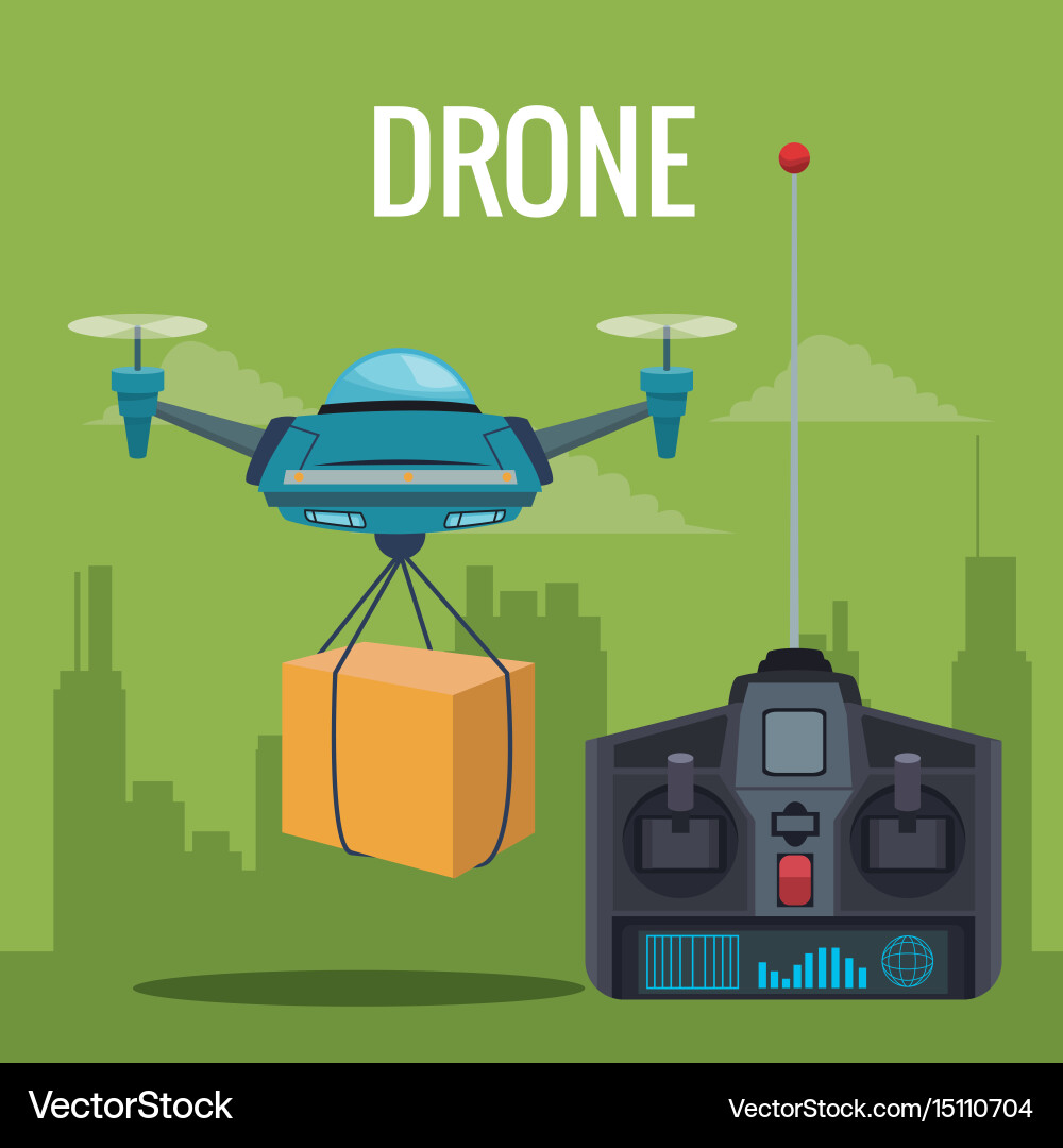 sky landscape with buildings scene and people handle remote control ...