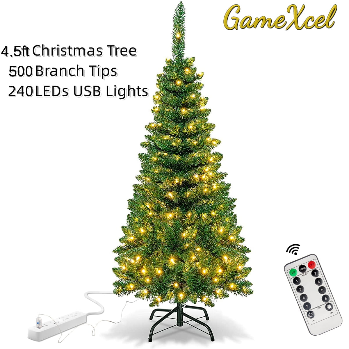 4.5ft Indoor Artificial Christmas Tree with USB, 350 Branch Tips, 8 LED ...