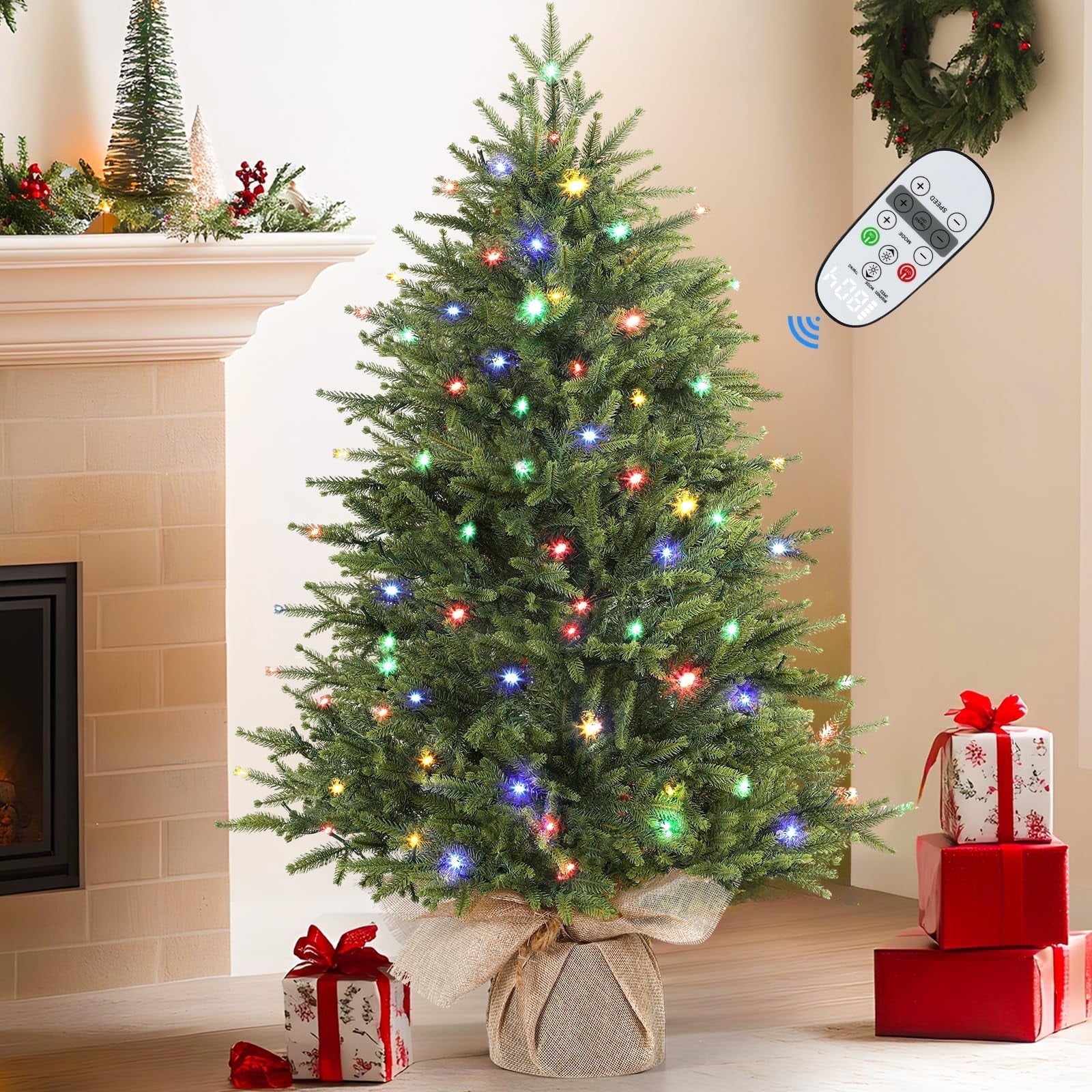 RTB-SHareconn 4.5ft Prelit Artificial Christmas Pine Tree w/ Remote ...