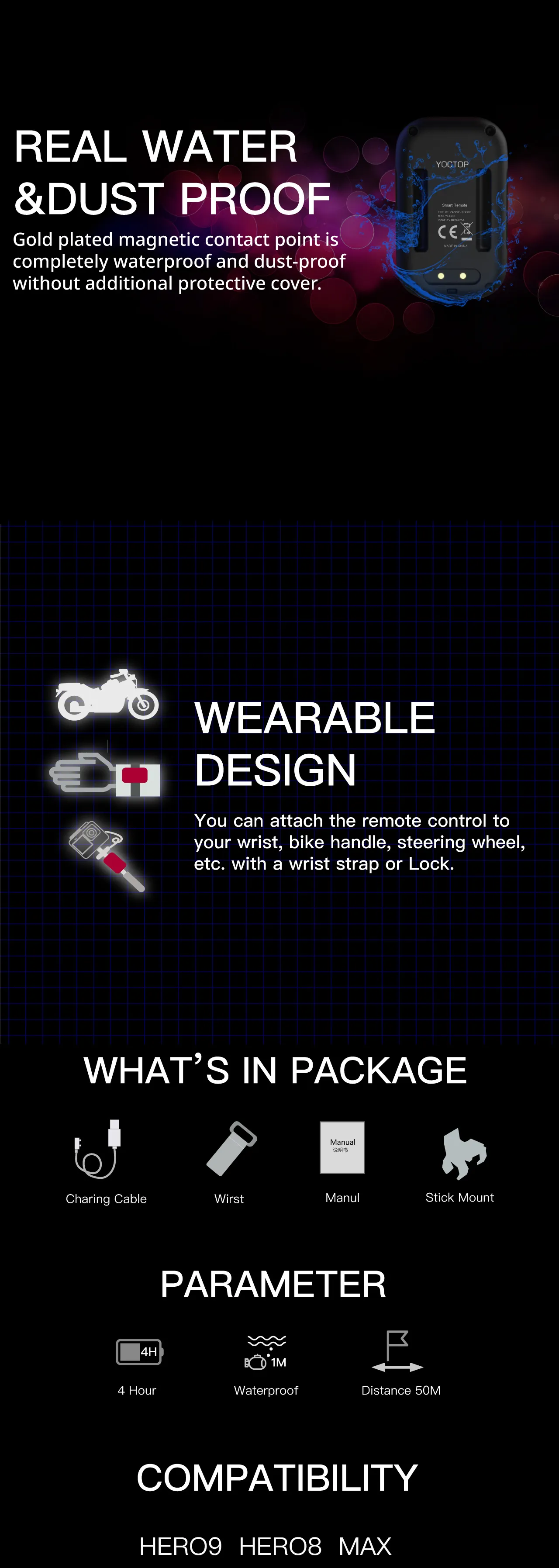 Remote-Control-for-GoPro-hero-11-10-9-8-Max-with-Stick-Mount-and-Wrist ...