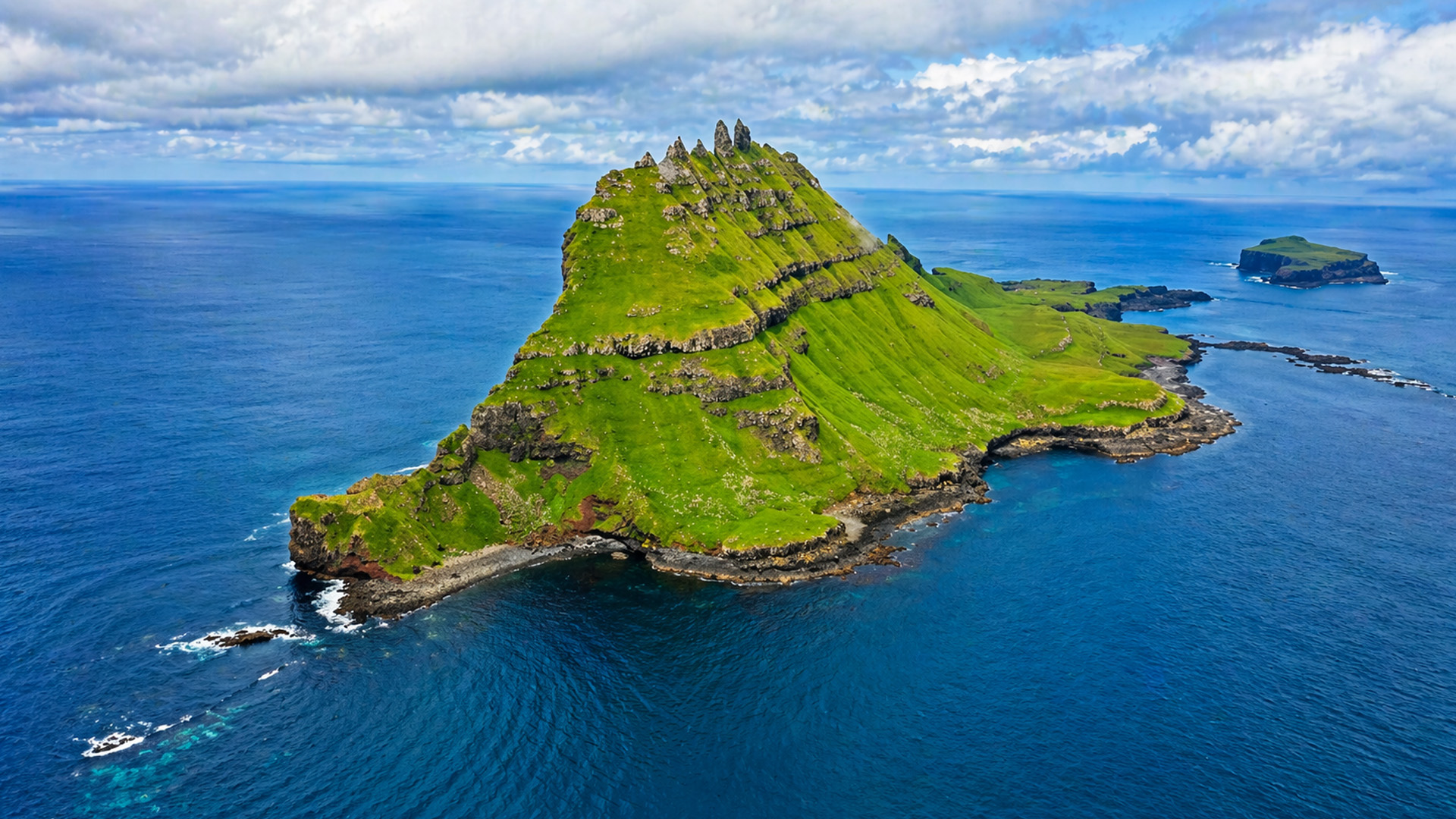 A remote island standing alone in the middle of the ocean
