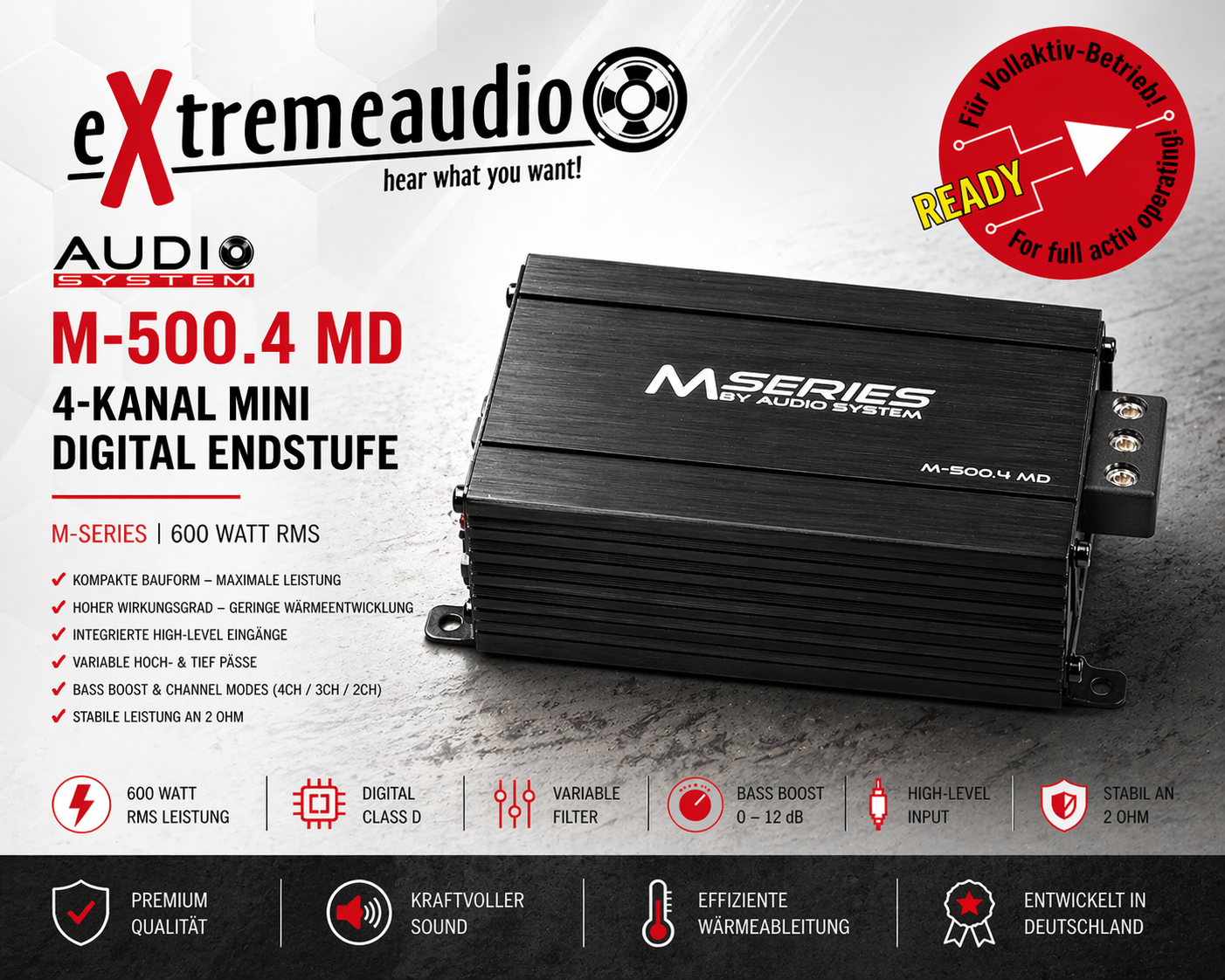 Audio System M-500.4 MD 4-Kanal MINI Digital Endstufe Verstärker M ...