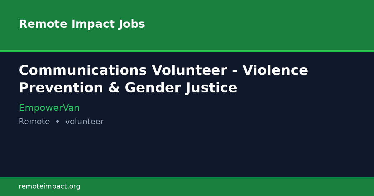 Communications Volunteer - Violence Prevention & Gender Justice at ...