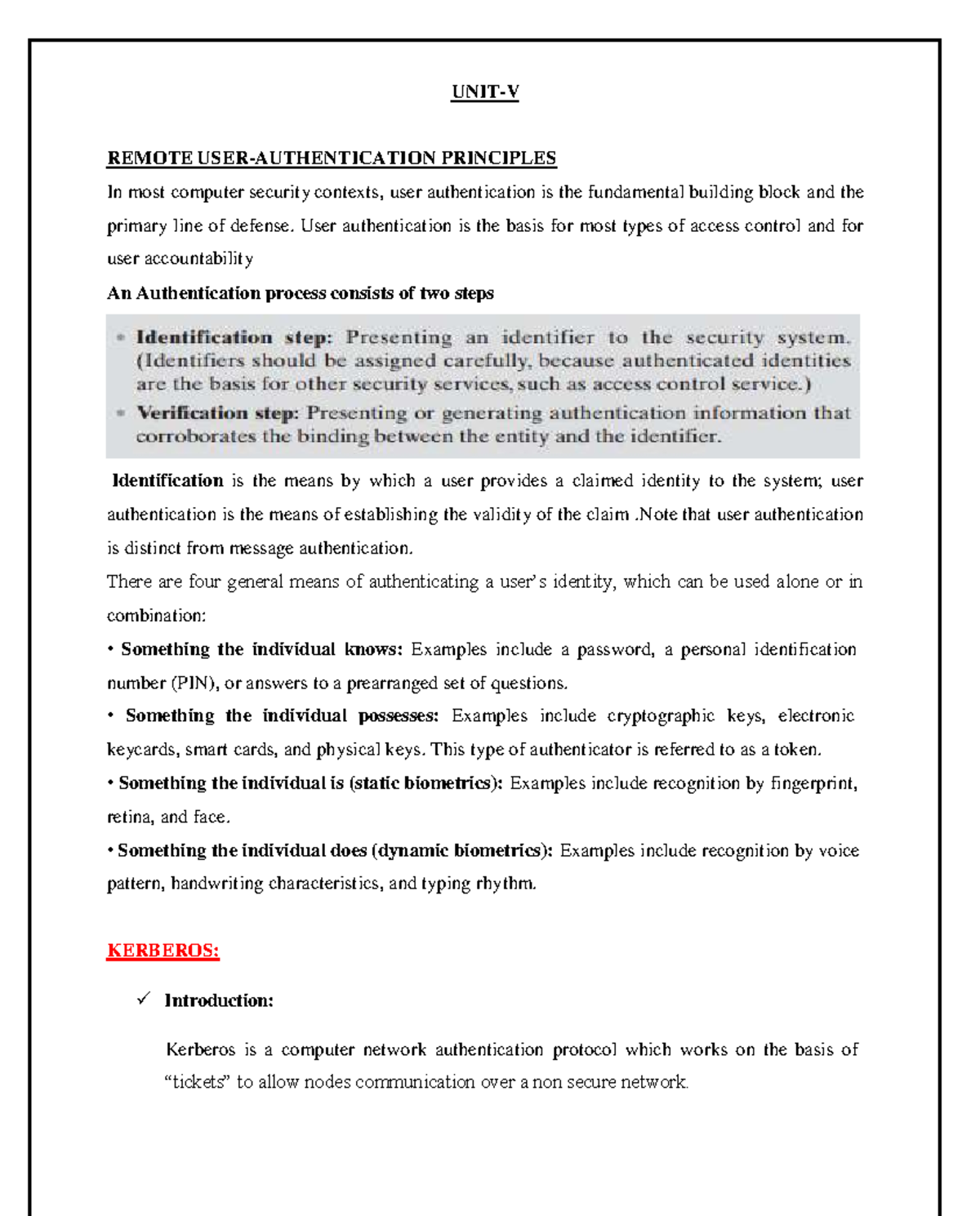 CNS Unit-4: Understanding Remote User Authentication Principles - Studocu