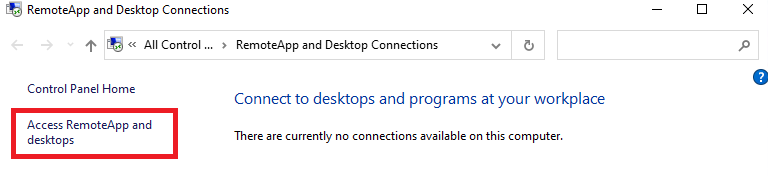Set Up RemoteApp for Connection to 2019 Environment