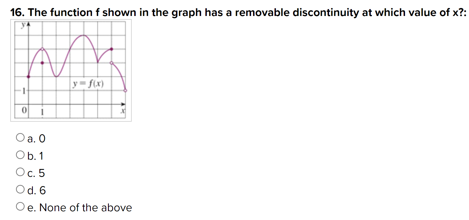 Solved 16. The function f shown in the graph has a removable | Chegg.com