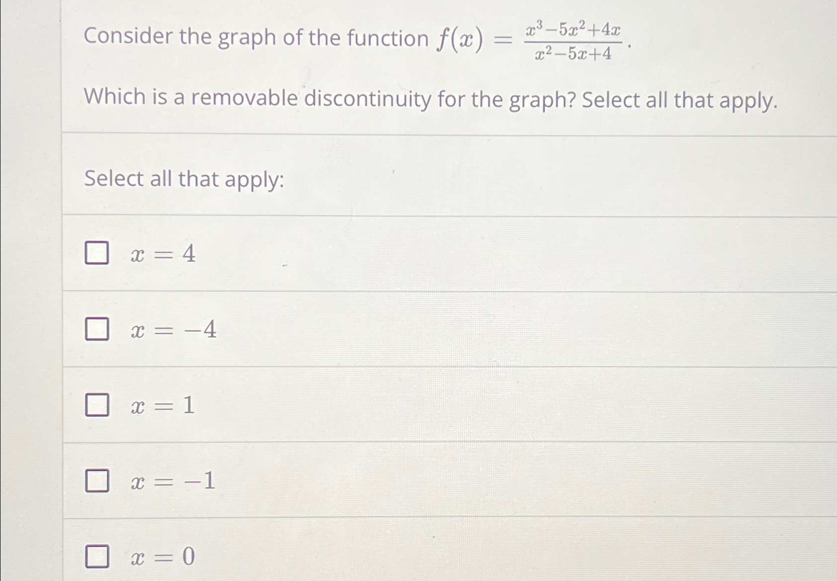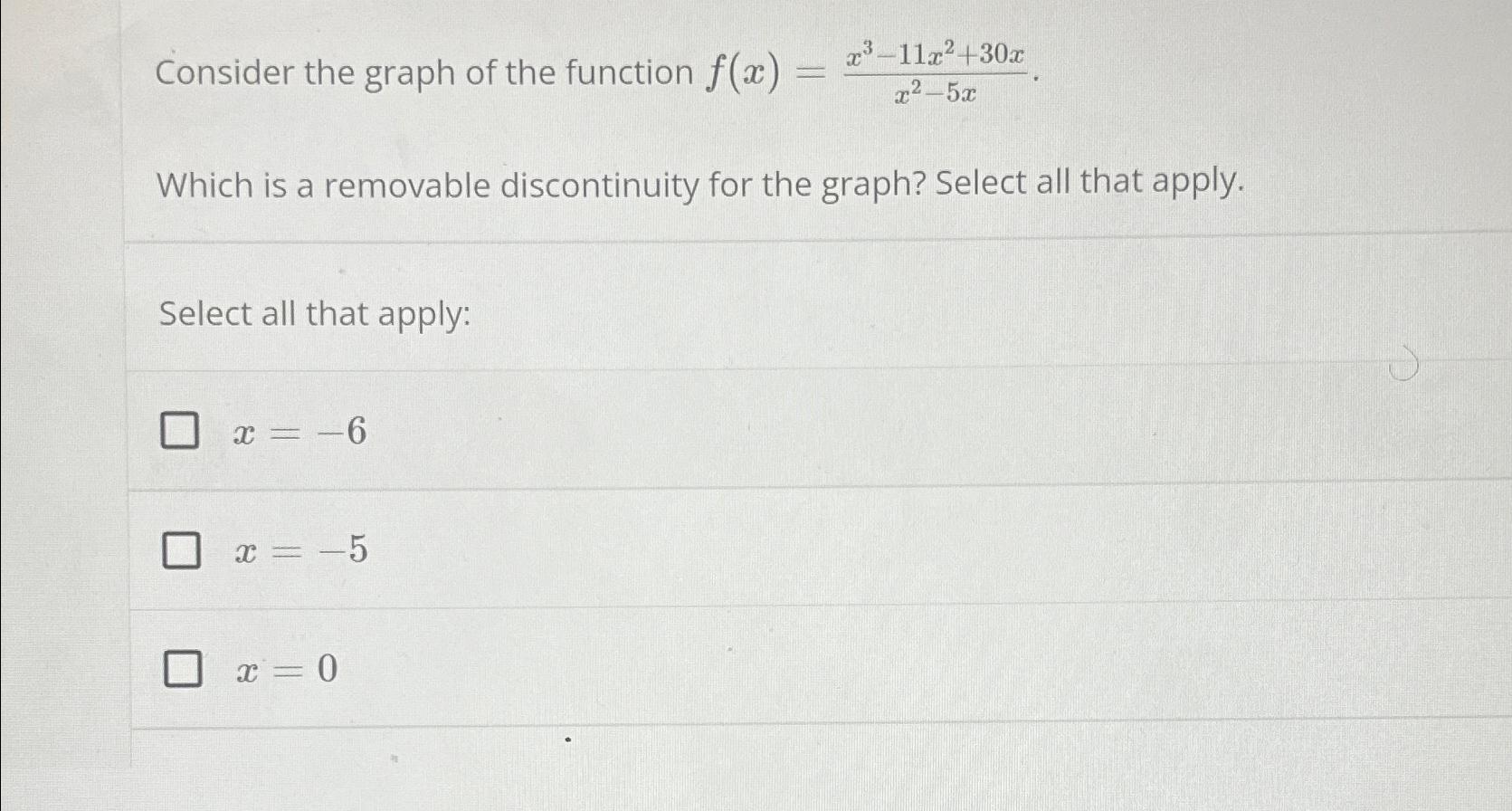 [ANSWERED] Consider the graph of the function f x Which is a removable ...
