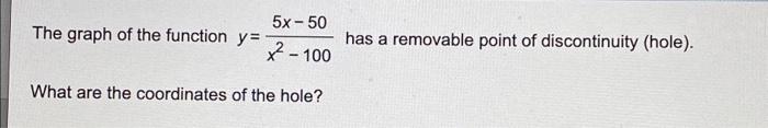 Solved 5x -50 The graph of the function y= has a removable | Chegg.com
