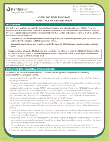 KYMRIAH Rems Program Hospital Enrollment Form Instructions | Manualzz
