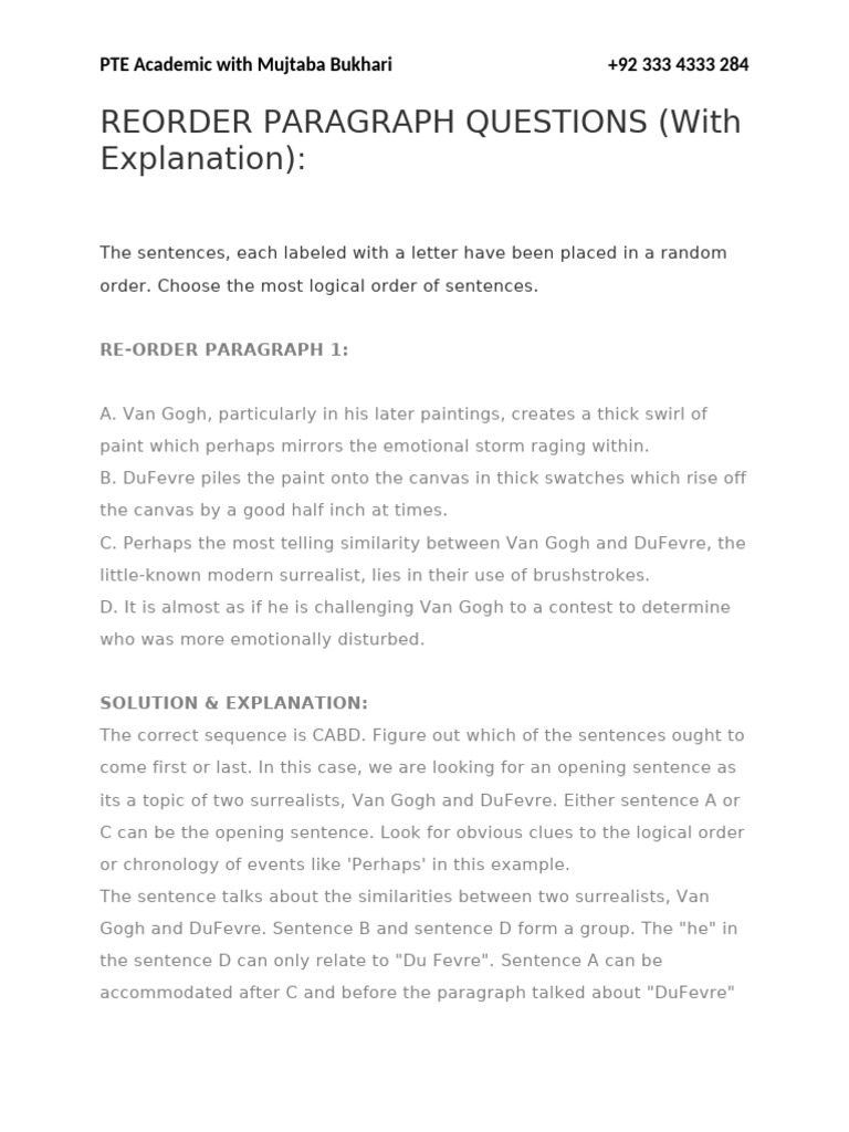 Reorder Paragraphs Practice With Solution & Explanation - PTE preparation