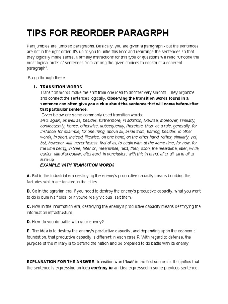 ReOrder Paragraph With Examples | PDF