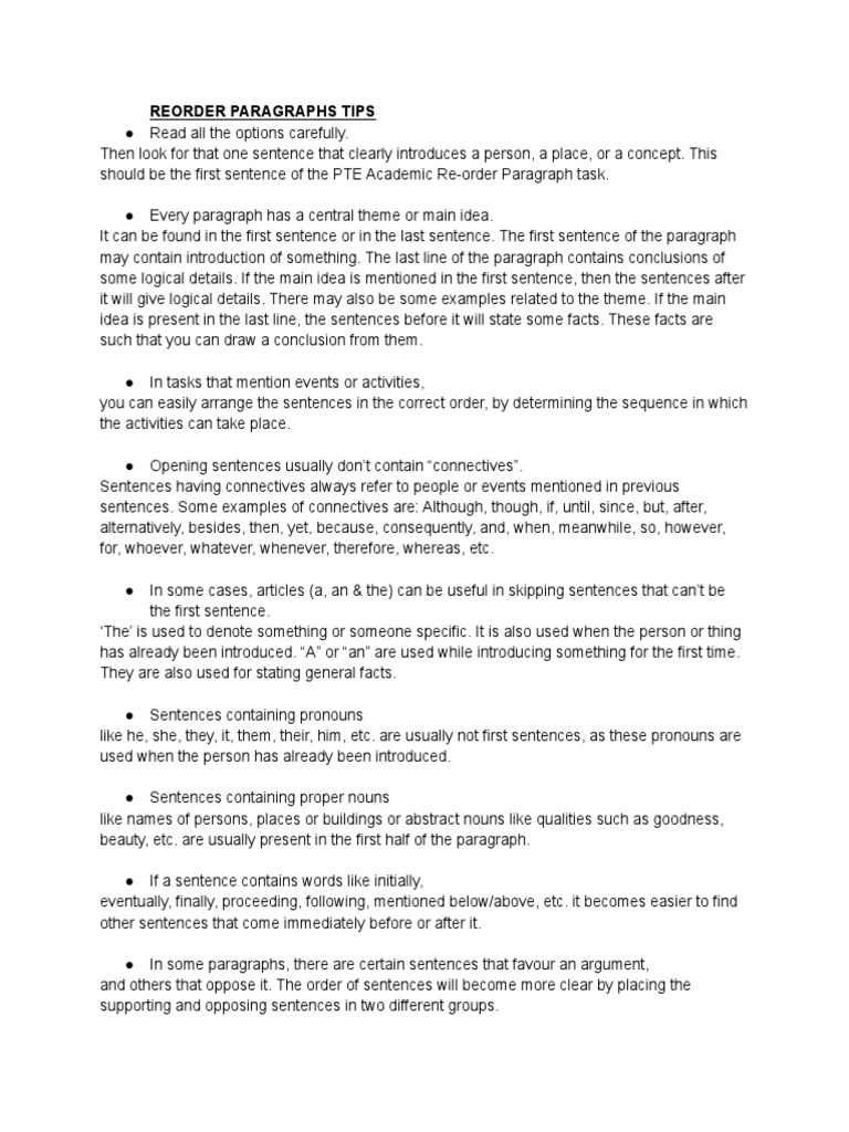 How to Master PTE Reorder Paragraphs: PTE Tips - PTE SUCCESS ONLINE