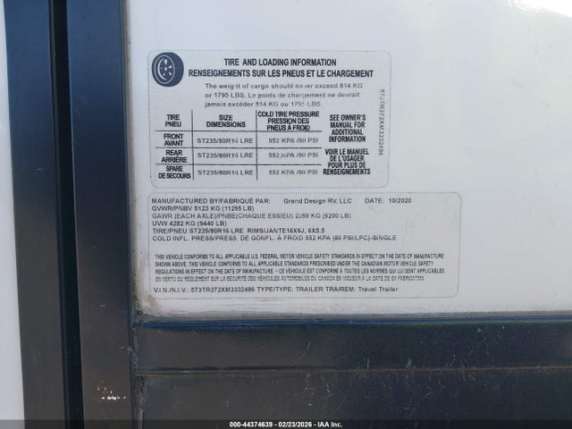 573TR372XM3332486, 2021 Grand Design Reflection vehicle history