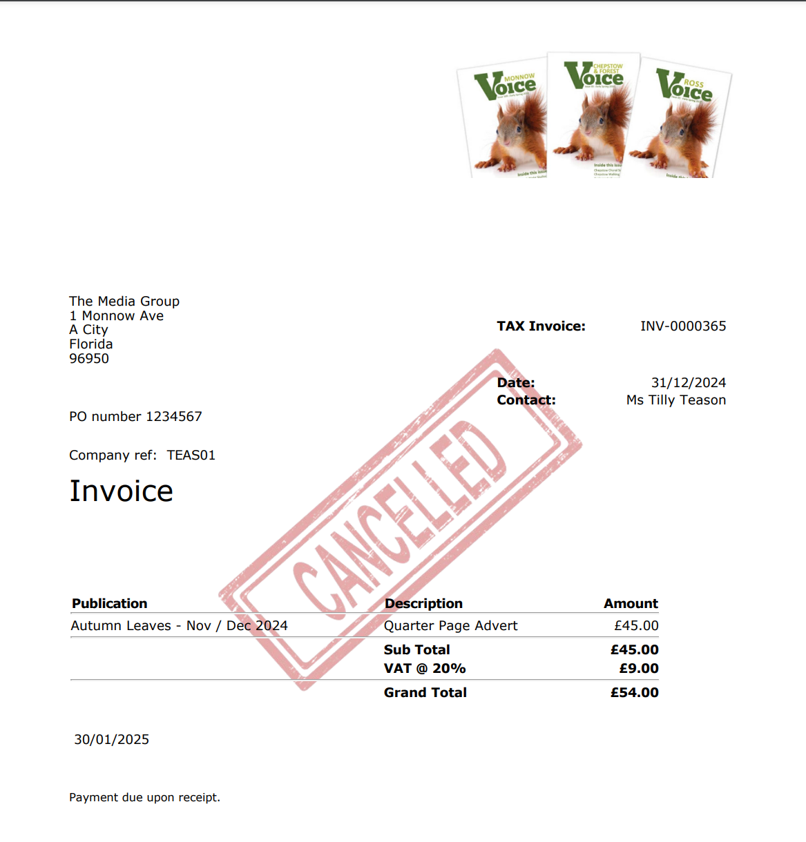 Cancelled Sales Invoice | PDF | Invoice | Value Added Tax