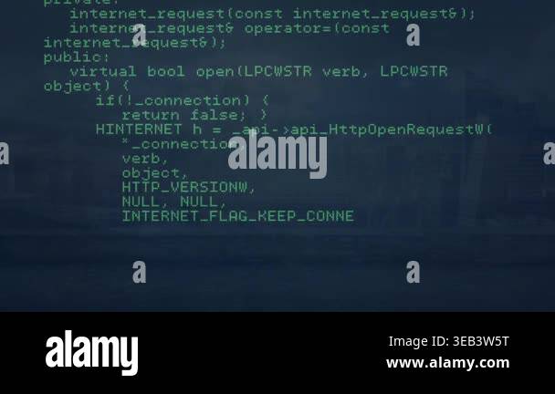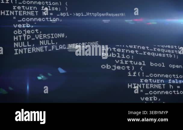 Animation of DNA strand with HTML code overlay on dark purple ...