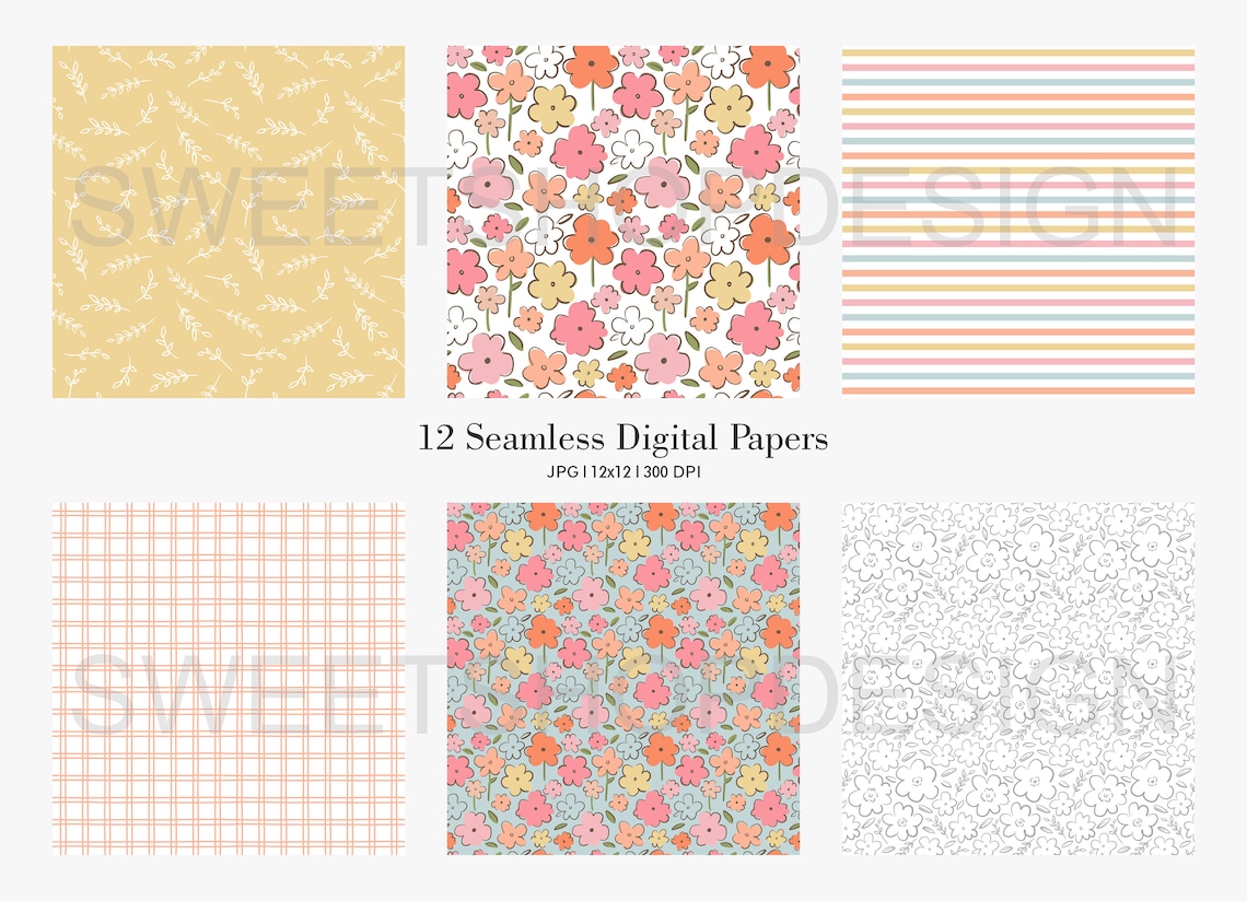 HELLO SPRING Floral Seamless Repeat Pattern Backgrounds - Etsy