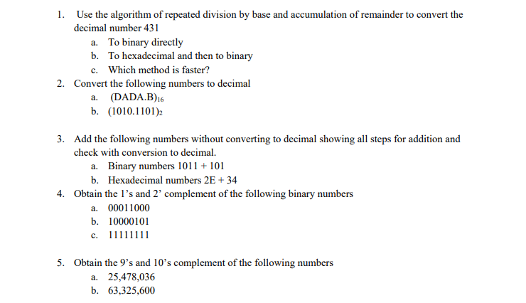Solved 1. Use the algorithm of repeated division by base and | Chegg.com