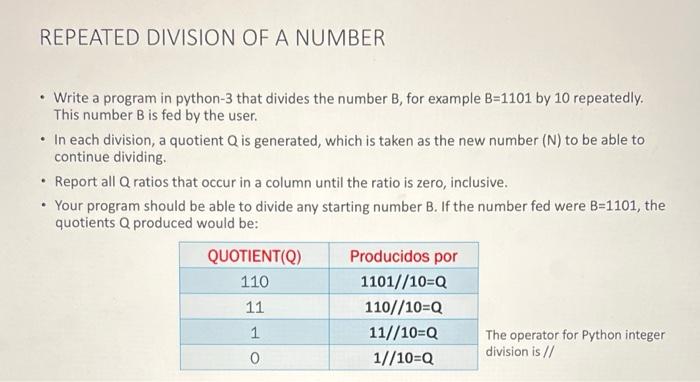 Solved REPEATED DIVISION OF A NUMBER . • Write a program in | Chegg.com
