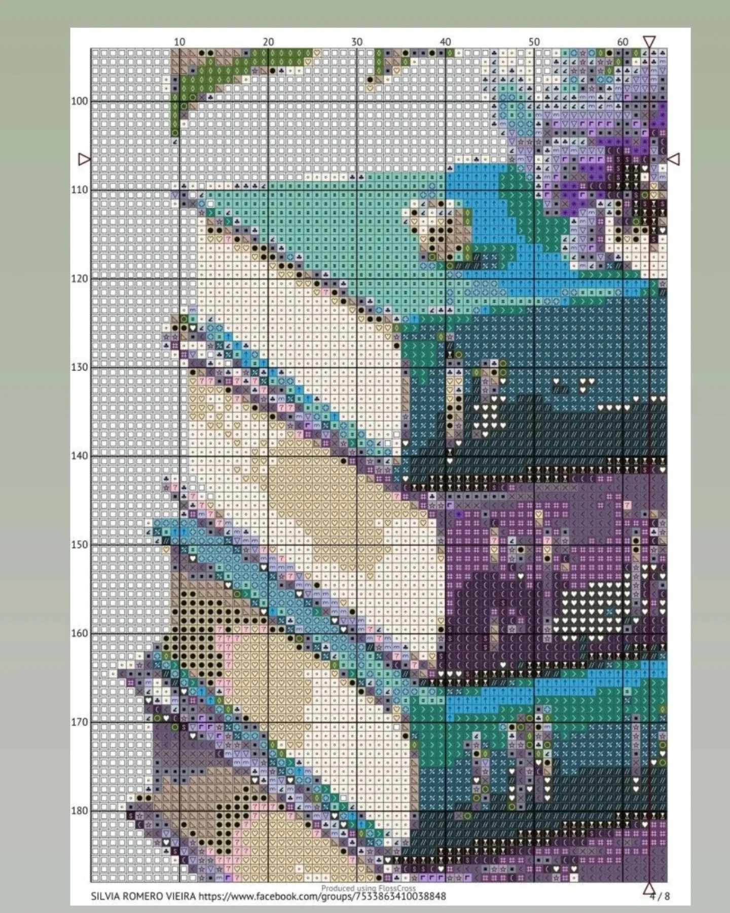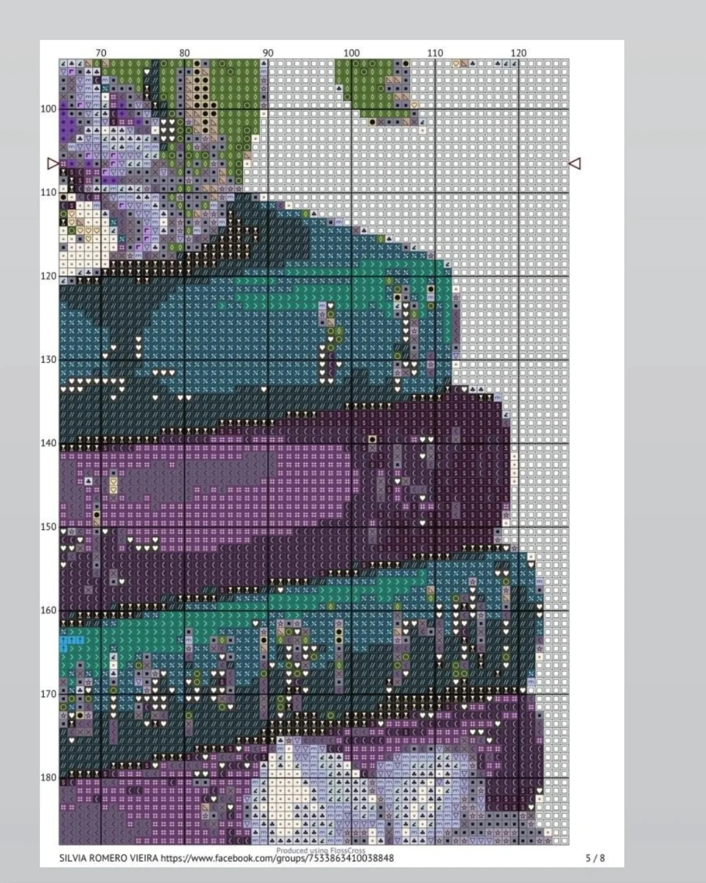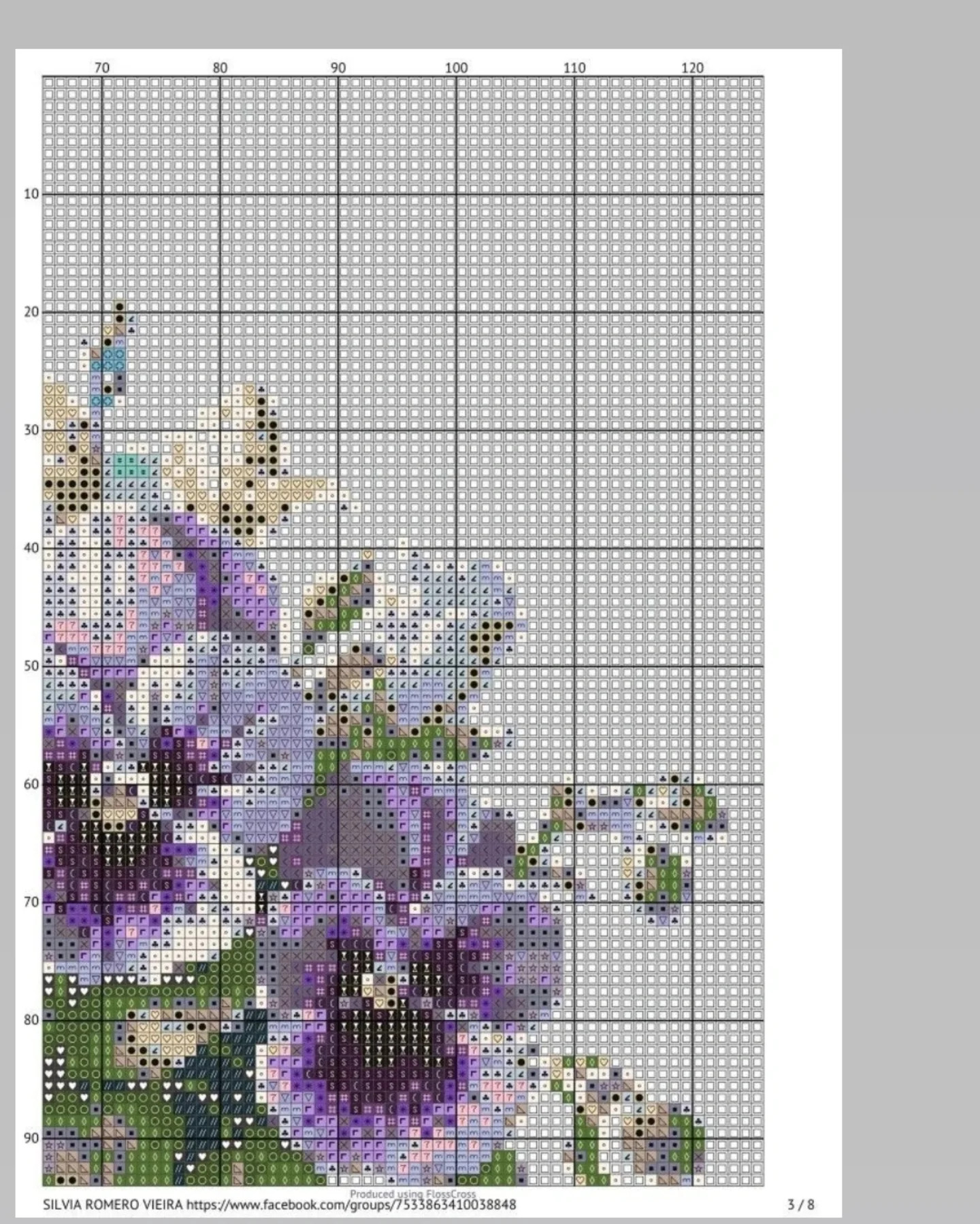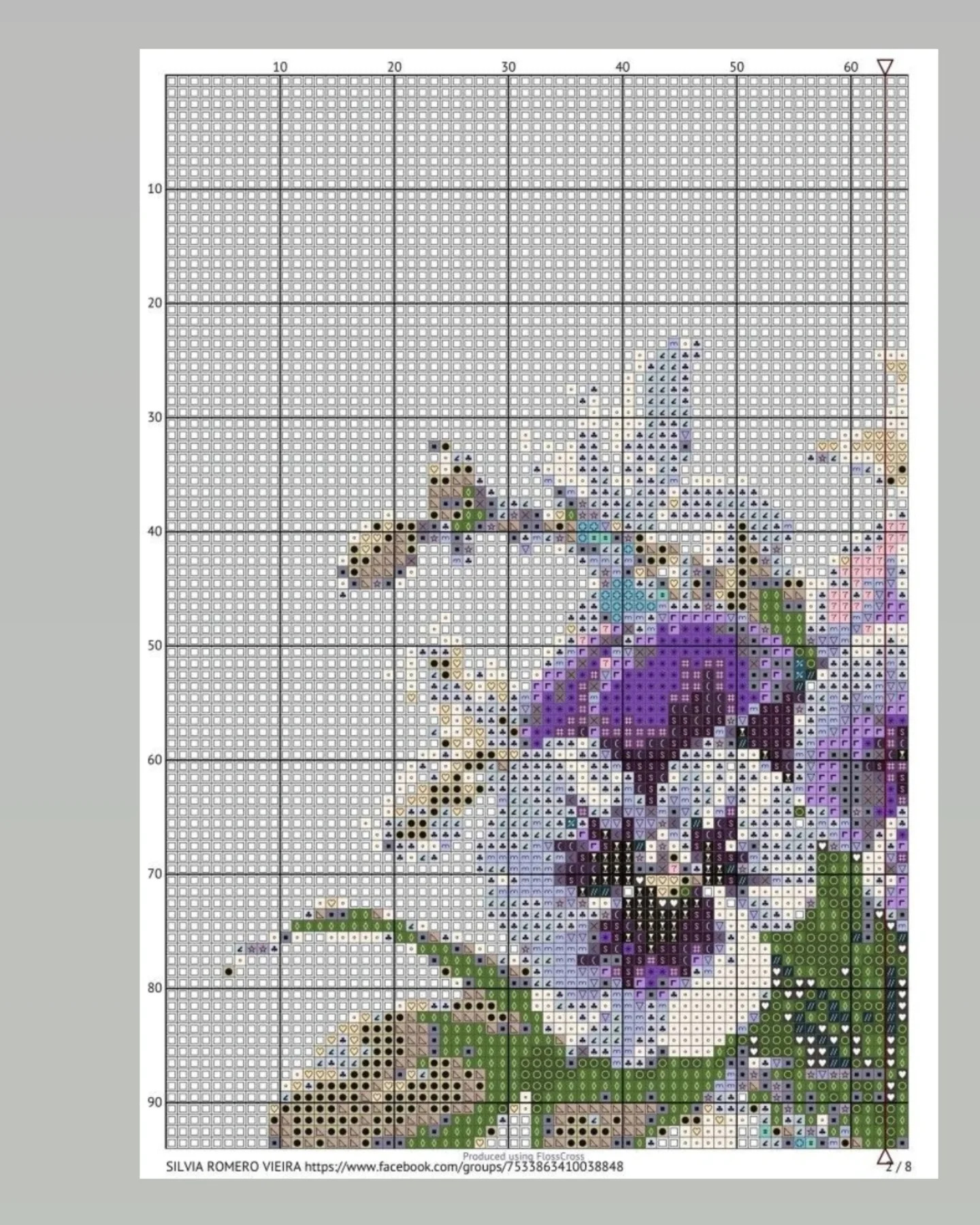 Cross Stitch Pattern Chart: Purple Pansies and Stack of Books | HandmadeV