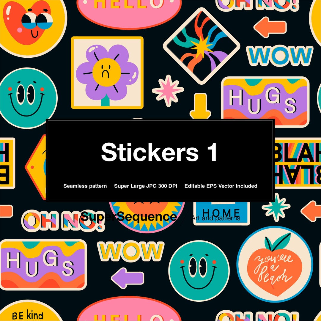 Stickers 1 Illustrated Pattern - Vector Seamless Repeat Pattern ...