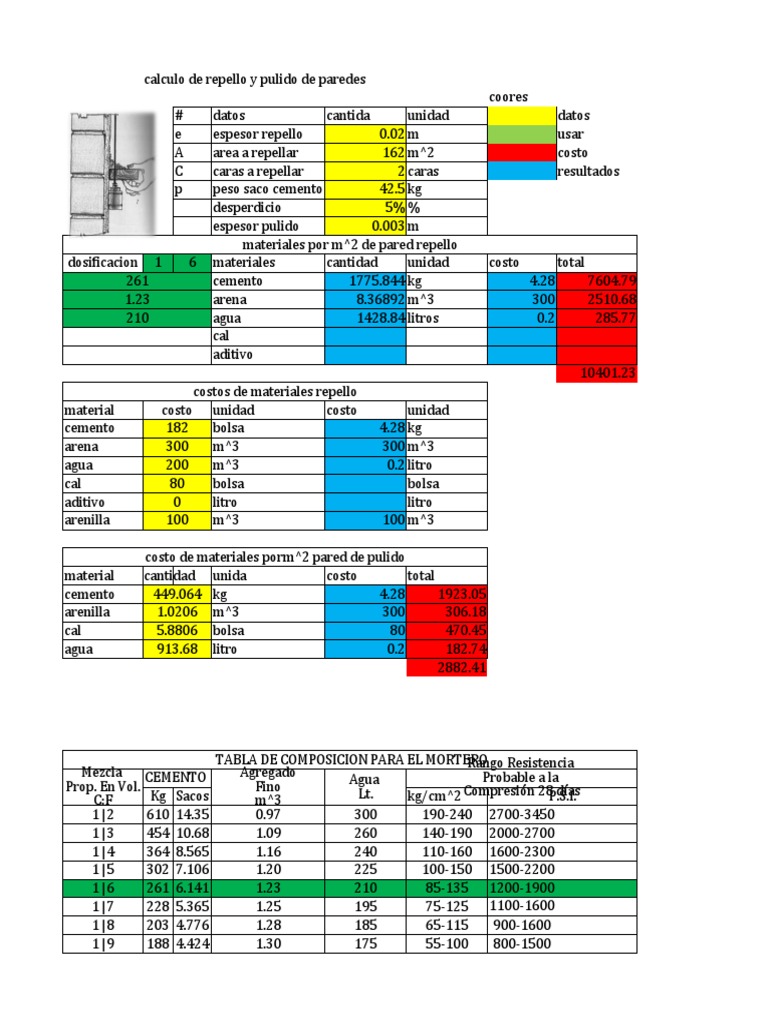 Cálculo de Repello y Pulido de Paredes | PDF | Ingeniería de ...