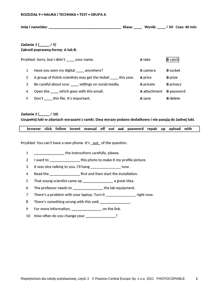 Repet Mat U01 Test Rozsz A - Repetytorium z języka angielskiego dla ...