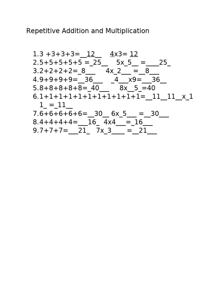 Repetitive Addition and Multiplication | PDF