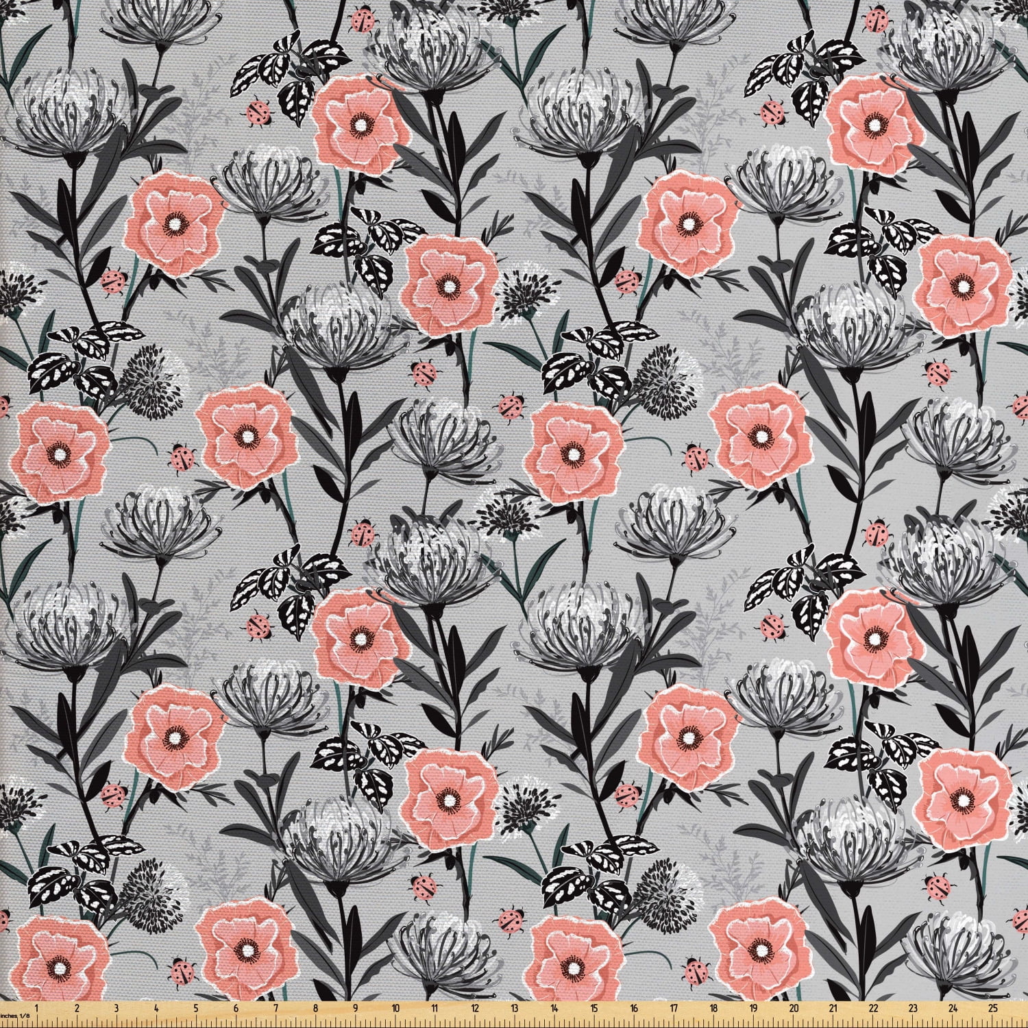 Floral Fabric by the Yard Upholstery, Sketched Ladybird Tropical ...