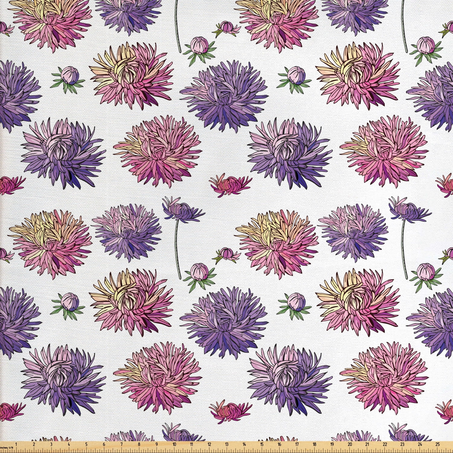 Floral Sofa Upholstery Fabric by the Yard, Hand Drawn Like Aster ...