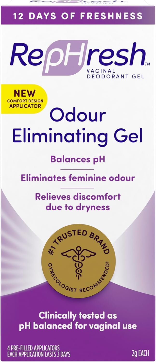 RepHresh Odour Eliminating Vaginal Gel, 12 Days of Freshness, 4 Pre ...