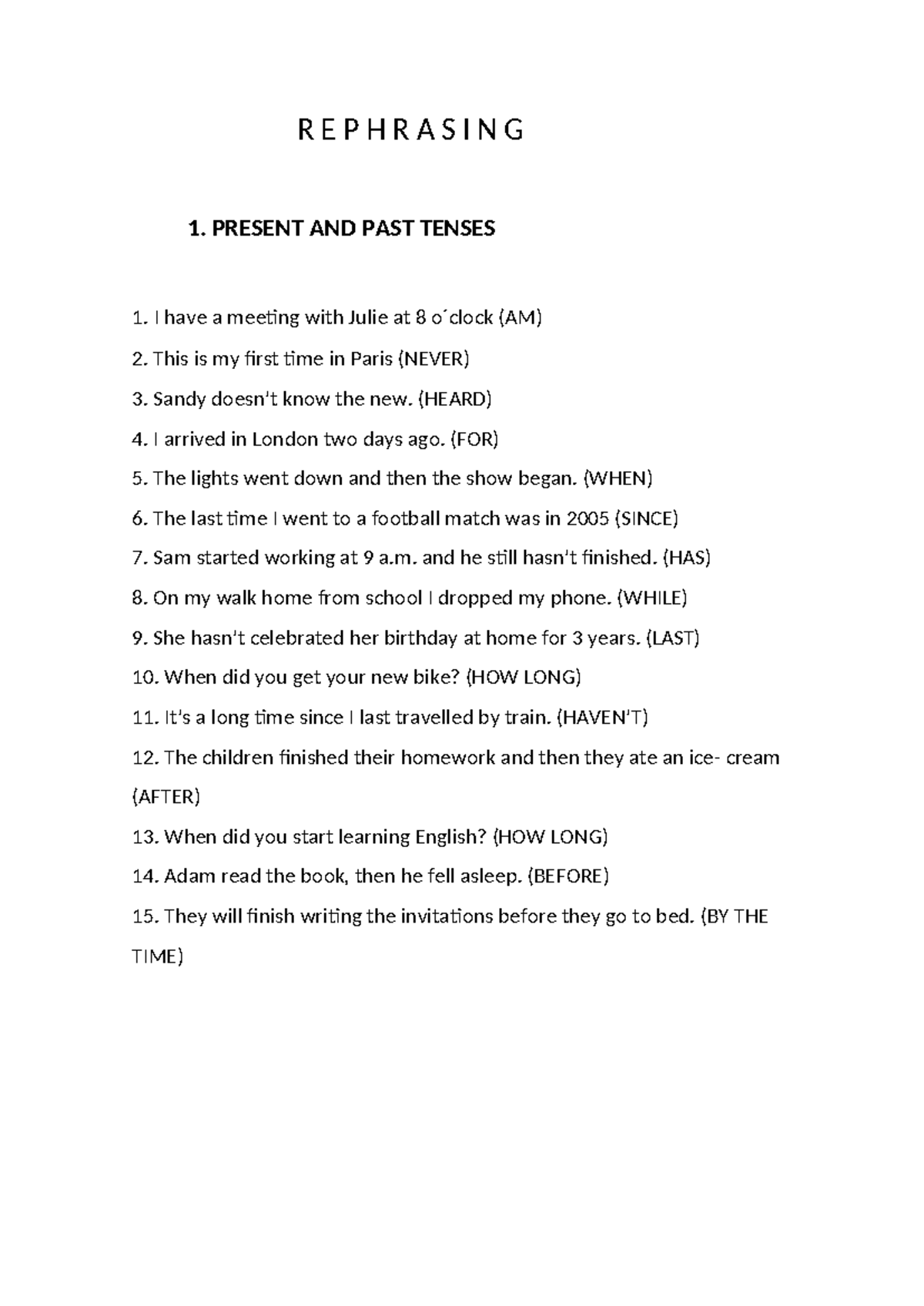 Rephrasing Exercises for English Grammar - 2 BACH - Studocu