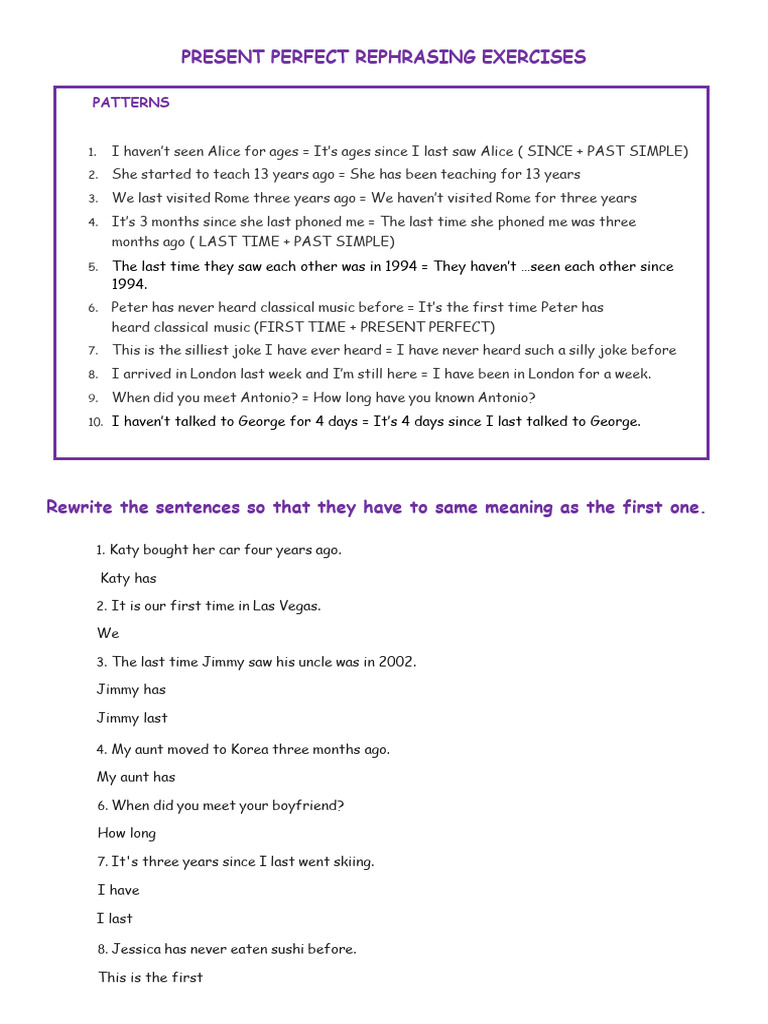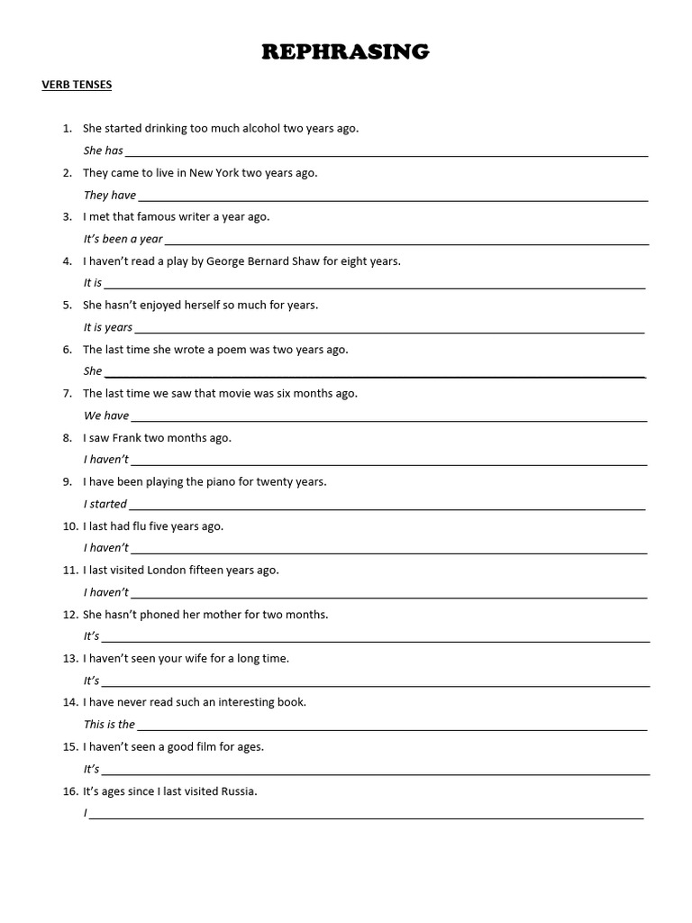 REPHRASING EXERCISES sentence transf…: English ESL worksheets pdf & doc