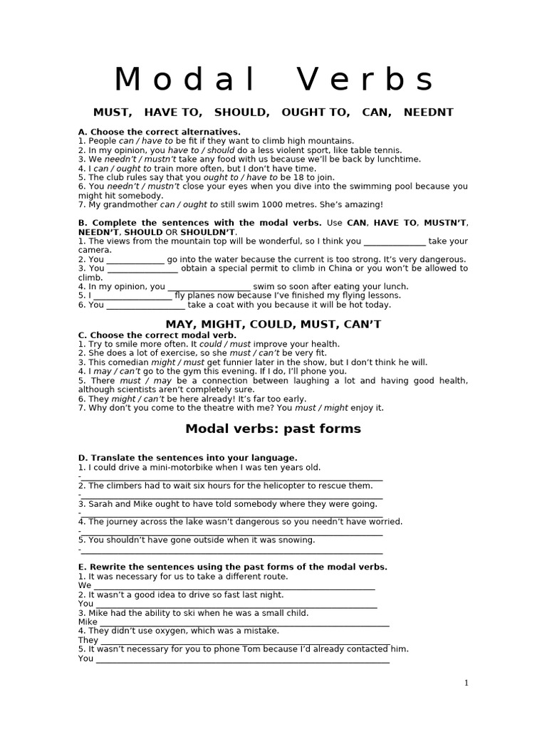 Past Modals Homework 2 Rephrasing Exercises + Student | PDF