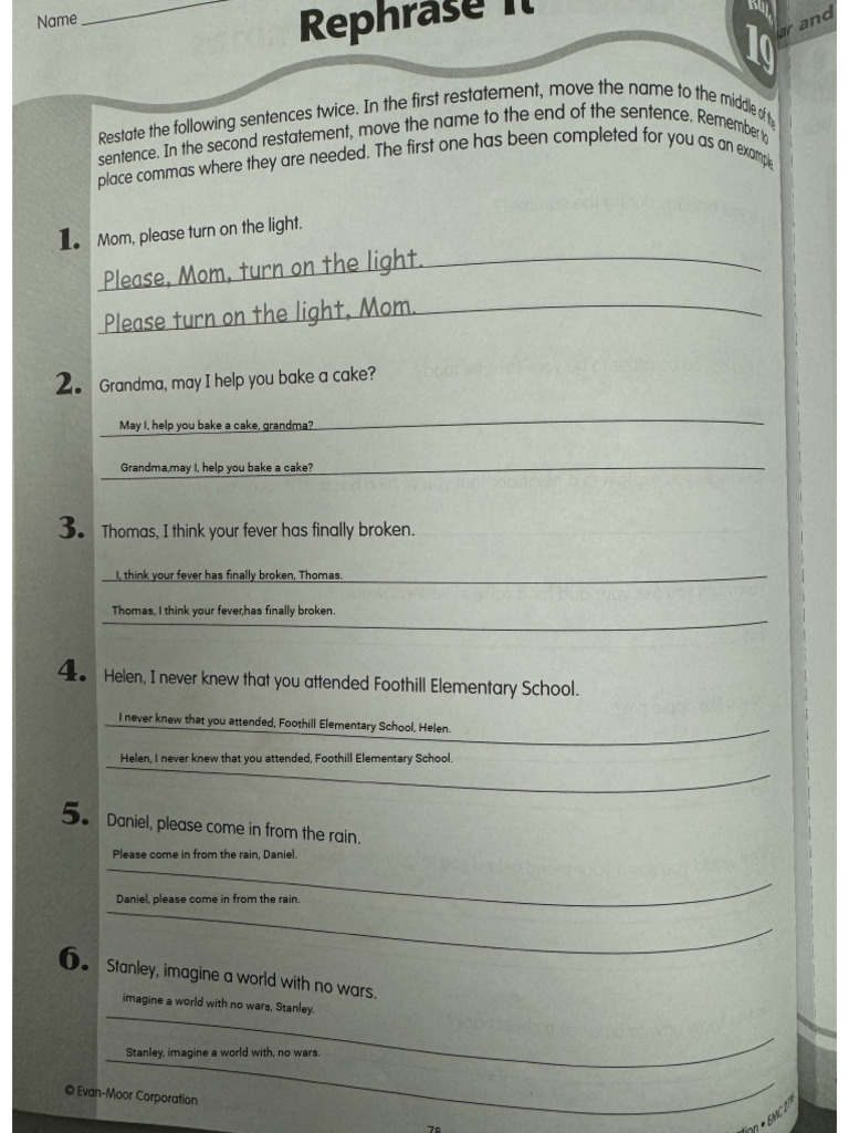 Rephrasing Worksheet
