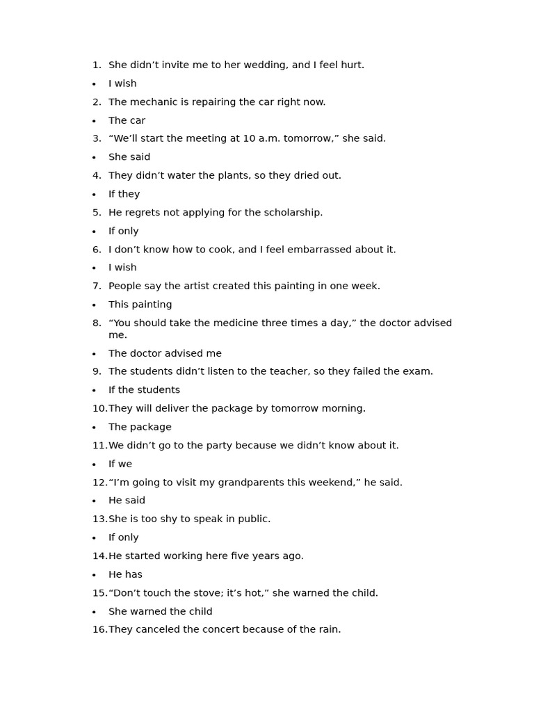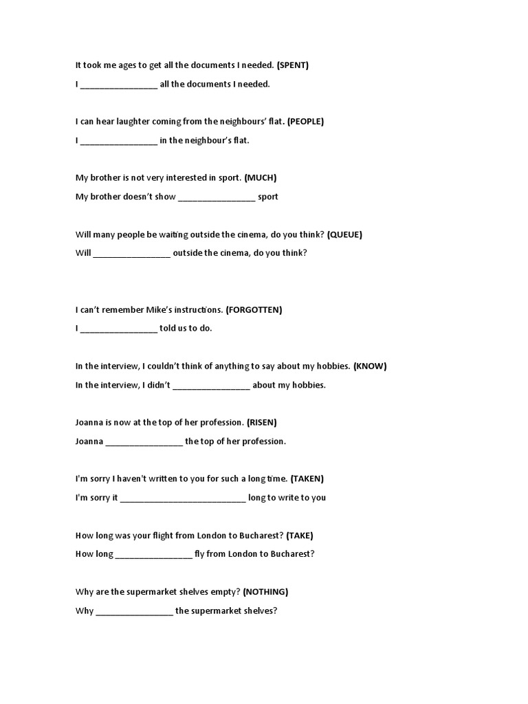 Grammar Rephrasing Exercises | PDF