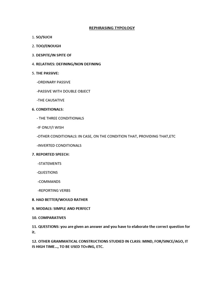 Rephrasing Typology | PDF