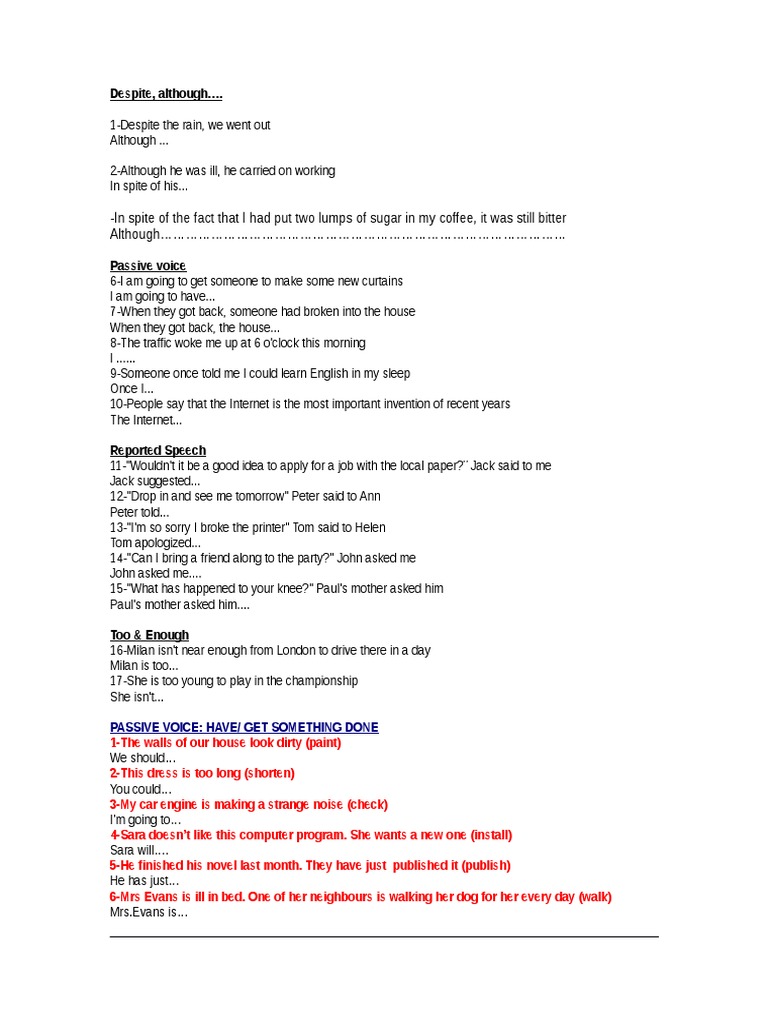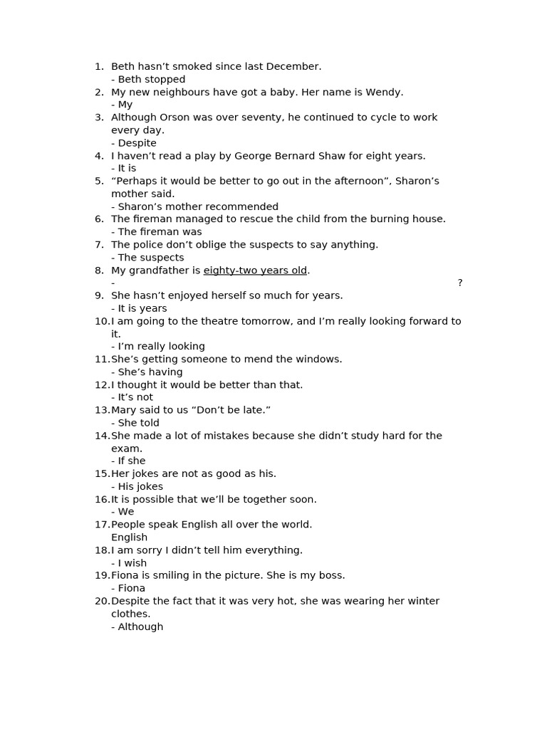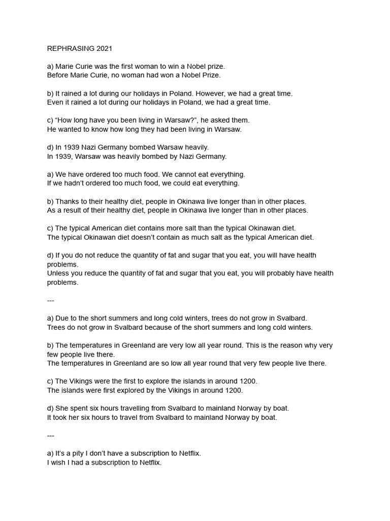 Rephrasing Exercises | PDF | Verb | Syntax