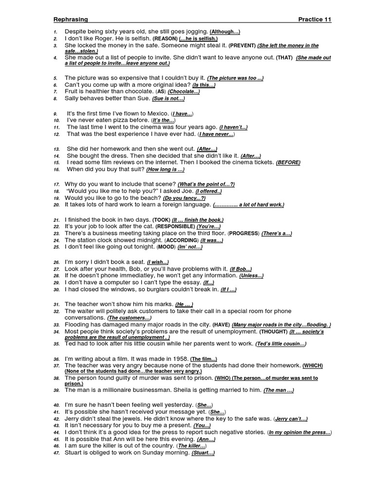 Rephrasing, Practice 11 | PDF