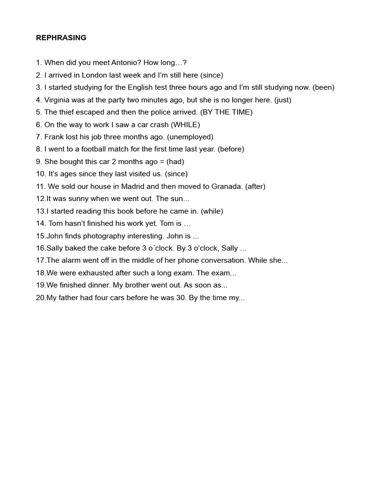 Rephrasing Exercises for Tenses | PDF
