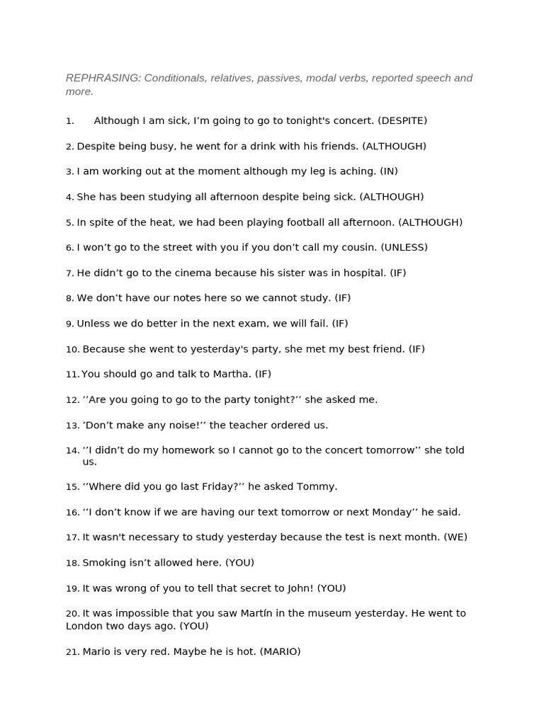 REPHRASING_CONDITIONALS,_PASSIVES,_RELATIVES,_MODAL_VERBS,_REPORTED | PDF