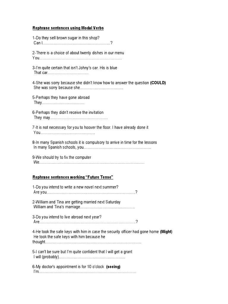 Rephrase Sentences Using Modal Verbs | PDF | Rules | Onomastics
