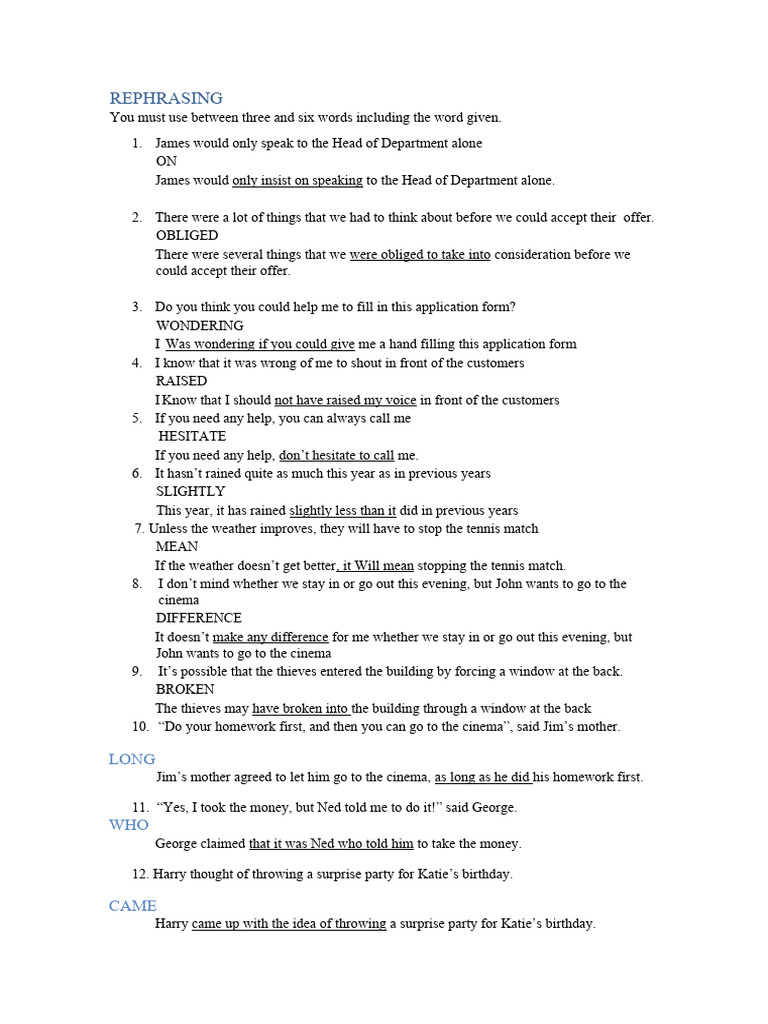 REPHRASING EXAMPLES: Sentence Transformations and Variations - Studocu