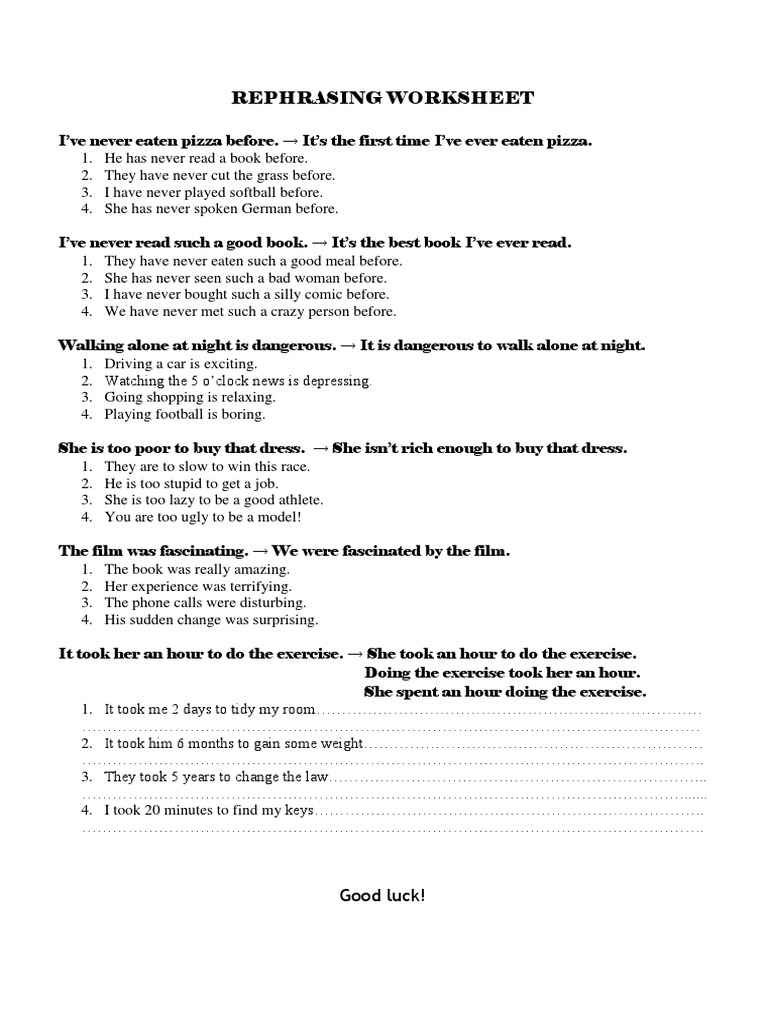 REPHRASING sentence transformation,…: English ESL worksheets pdf & doc