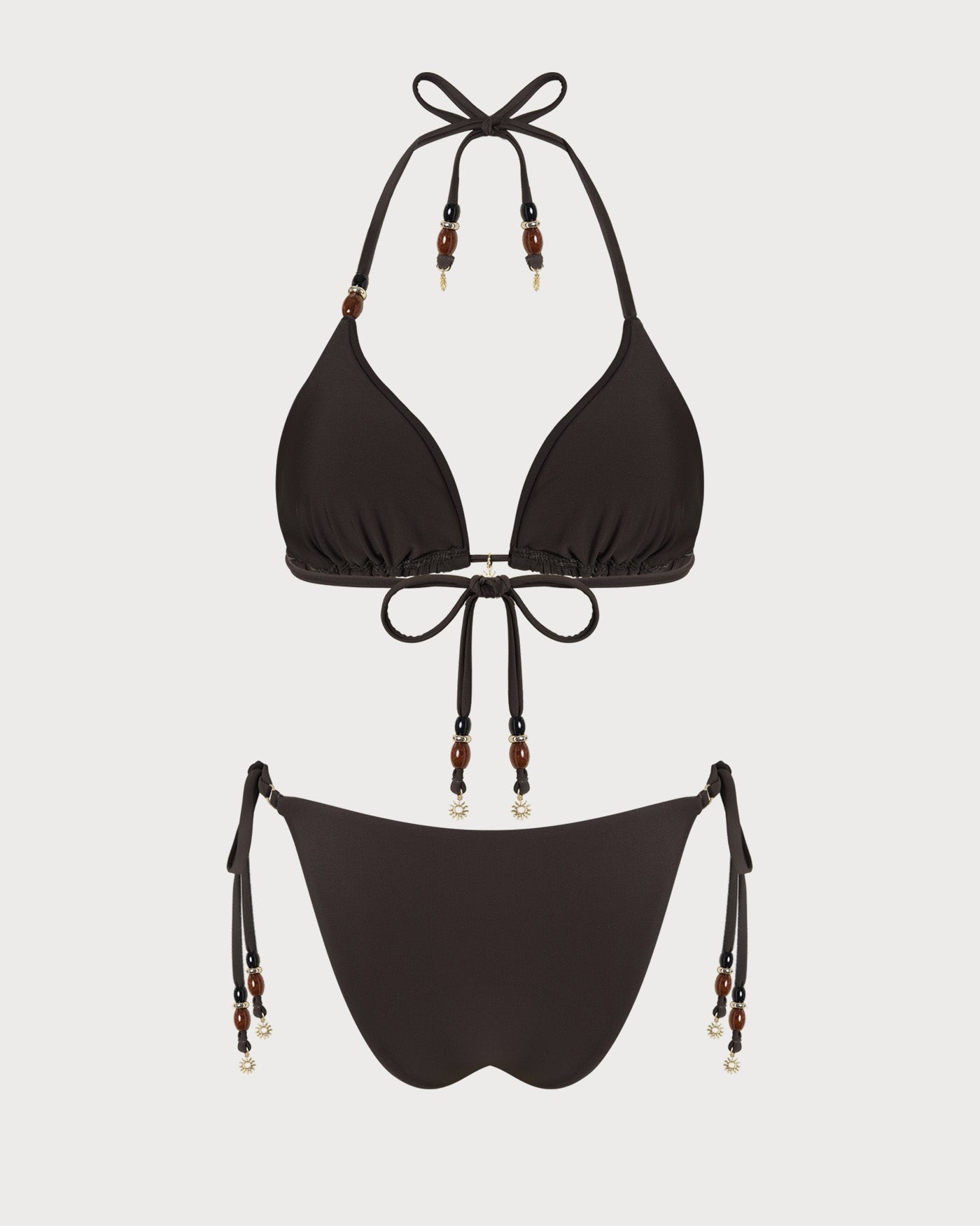 Brown Halter Triangle Bikini Set & Reviews - Brown - Bikinis | RIHOAS