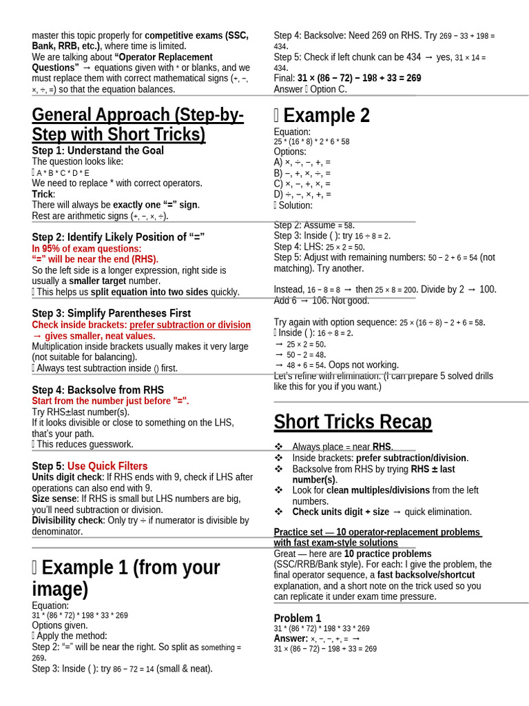 Short Tricks for Operator Replacement | PDF | Subtraction | Mathematics