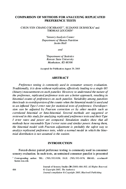 (PDF) Comparison of Methods for Analyzing Replicated Preference Tests ...